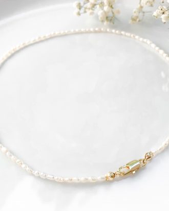 Collar hecho de perlitas naturales y broche de plata de 950.Medidas del collar: 37,5 cm de largo