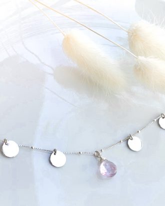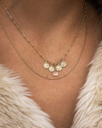 Collar Mini Moneditas y Cuarzo Rosa
