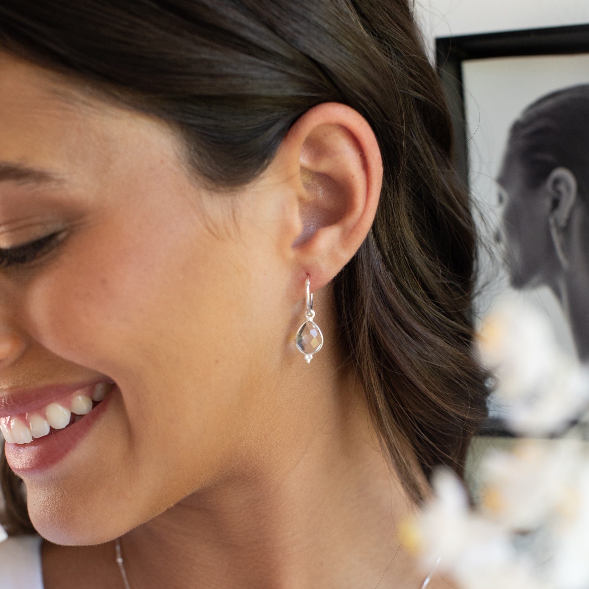 Argollas de plata de 925 con colgantes de piedra de Cuarzo Cristal.