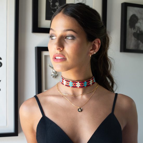 Choker/gargantilla de cinta con detalles de cierre bañados en oro de 18k.