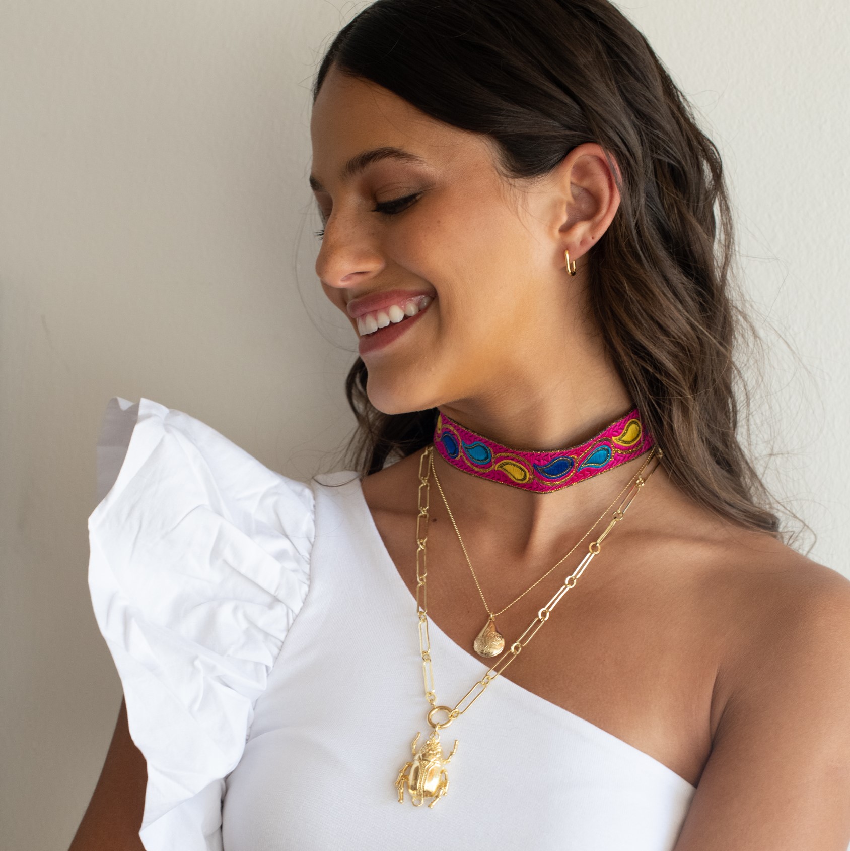 La cadena del collar mide 45 cm y está diseñada para ajustarse perfectamente en tu cuello.