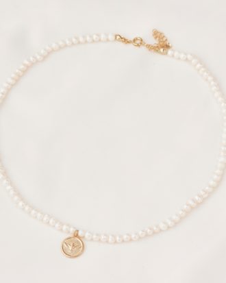 Collar de perlitas naturales de río de 37 cm con medalla de Espíritu Santo de gold filled de 18 k,