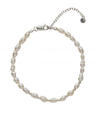 Pulsera hecha de perlitas de río y mostacillas de plata.Broche y cadena de alargue están hechos de plata.Medidas de la